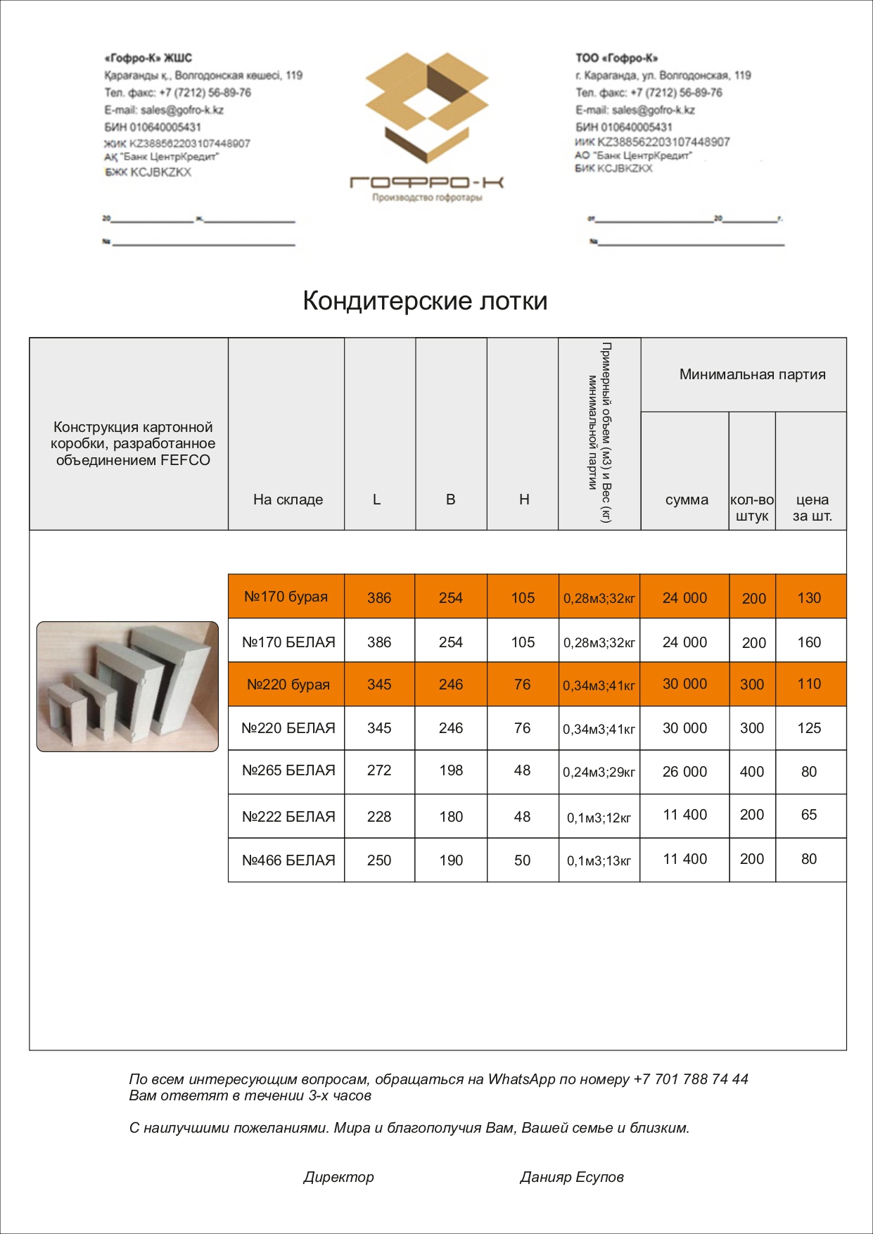 В данное время в Казахстане большое внимание уделяется защите окружающей среды, и в этой связи наша упаковка из гофрокартона как раз является экологичной и не наносит вреда природе. Её высокие потребительские свойства, экологичность, невысокая стоимость производства позволяют гофролоткам в Казахстане оставаться лидером в области упаковочных материалов для продуктов питания.
